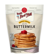 Brighten your day with the sweet aroma of piping hot buttermilk pancakes and waffles. Our Buttermilk Pancake and Waffle Mix is full of wholesome goodness and irresistible flavor, because we use only the finest ingredients: organic stone ground whole grain wheat flour, real buttermilk, aluminum-free leavening and pure raw sugar. Bob’s Red Mill whole grain Buttermilk Pancake and Waffle Mix is quite nutritious, providing a healthy dose of protein, calcium and iron. It is also an excellent source of fiber.